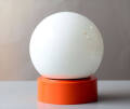 この年代らしいポップなオレンジのプラスチック筐体にオーブ型のホワイトガラスの掛け合わせがかわいくスペースエイジかつミッドセンチュリーな佇まい。