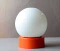 この年代らしいポップなオレンジのプラスチック筐体にオーブ型のホワイトガラスの掛け合わせがかわいくスペースエイジかつミッドセンチュリーな佇まい。