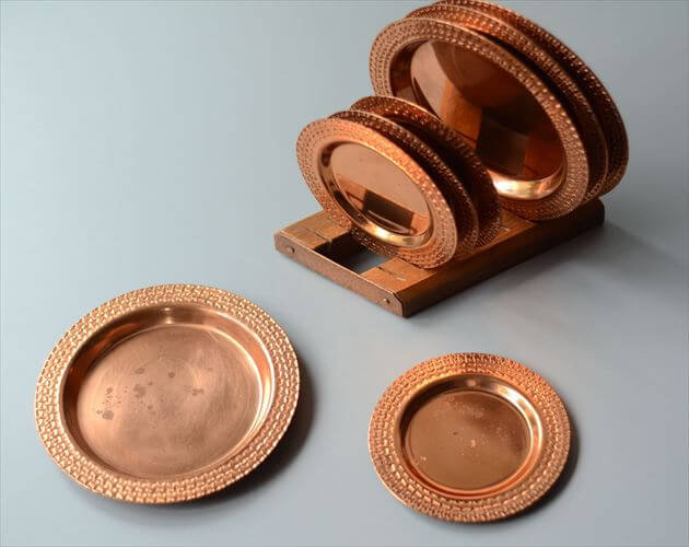 ドイツから 古い純銅 コパー豆皿 8枚とスタンドのセット